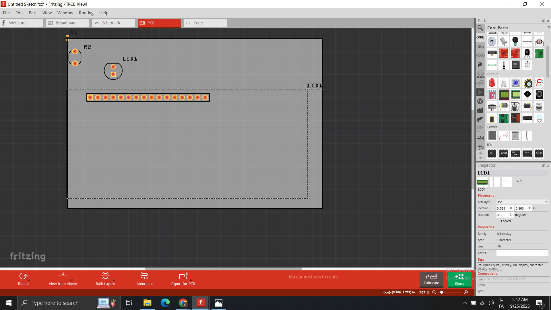 وقتی وارد تب PCB میشی، قطعاتی که توی Breadboard و Schematic گذاشتی، اینجا هم ظاهر میشن.