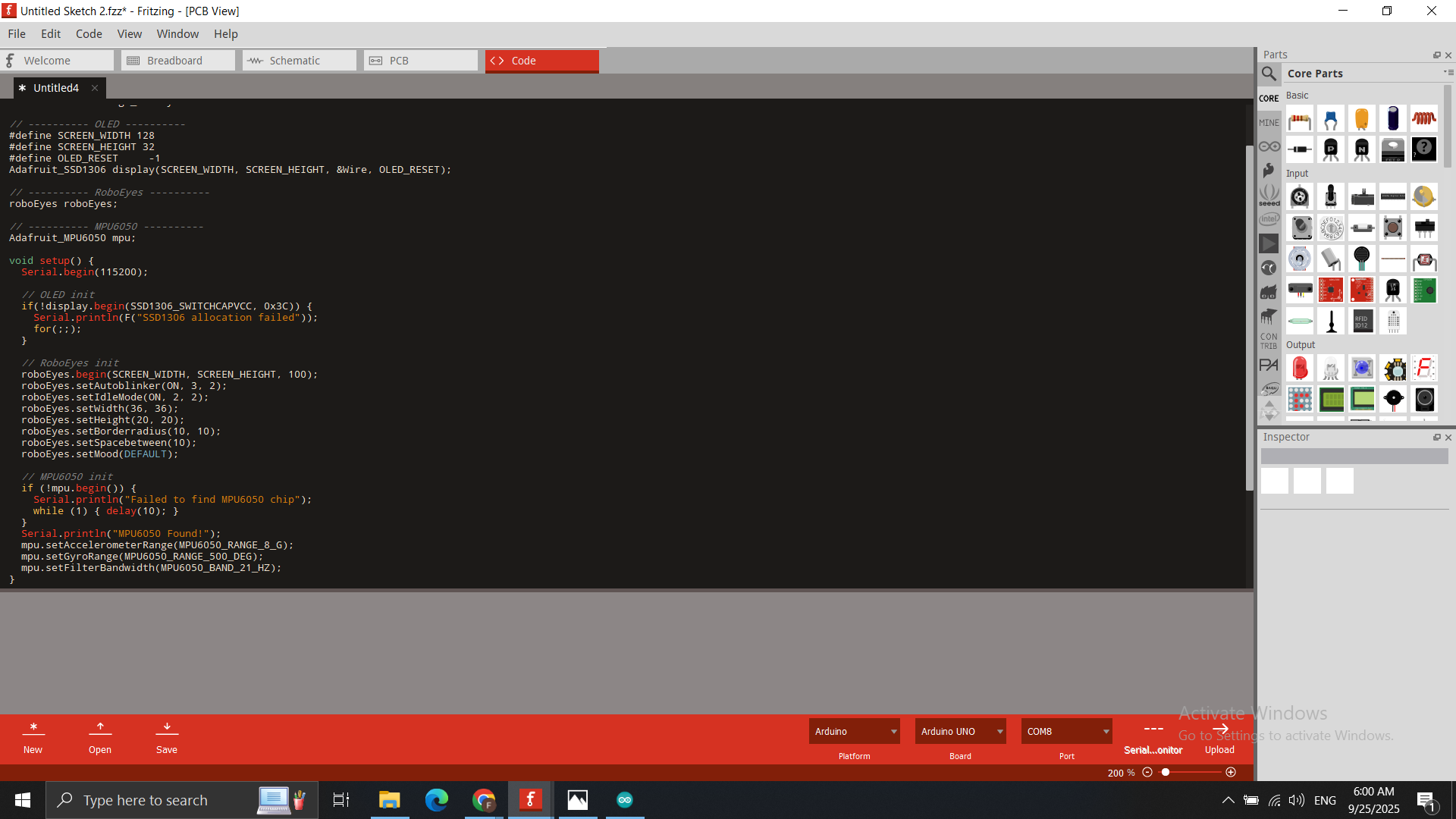این تب برای نوشتن یا قرار دادن برنامهی آردوینو داخل همون پروژهی فریتزینگ هست.